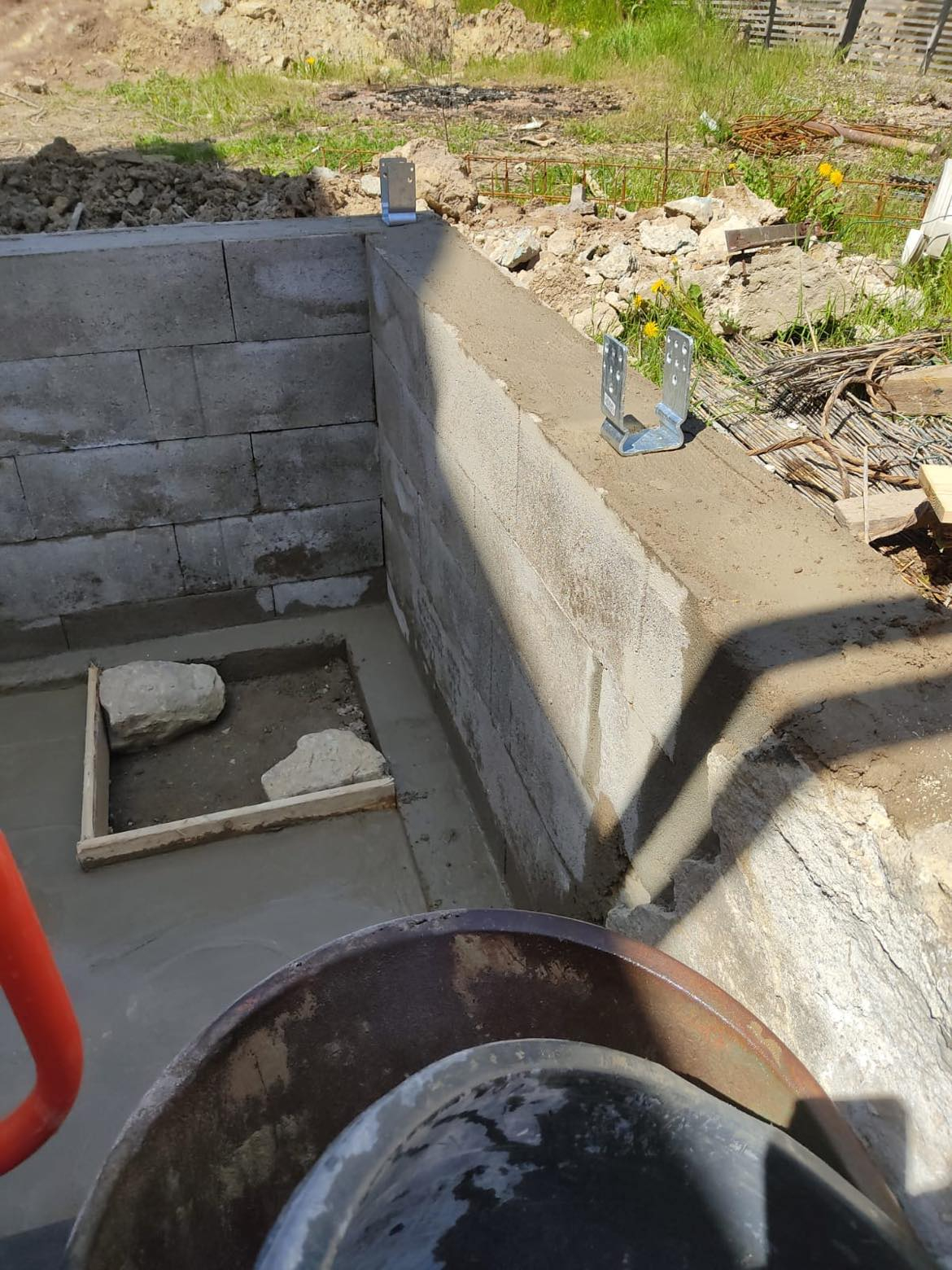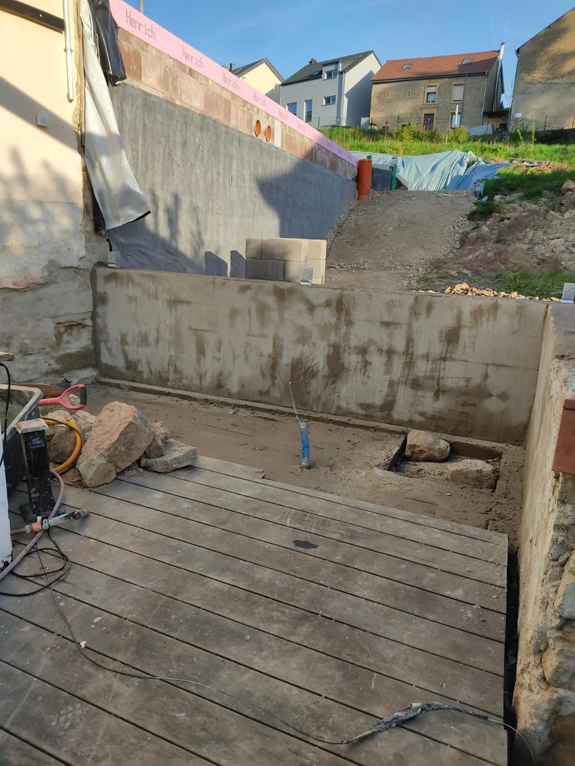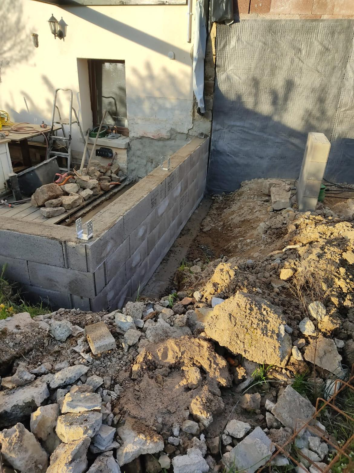 Realisation du terrassement, preparation construction d'un petit mur.